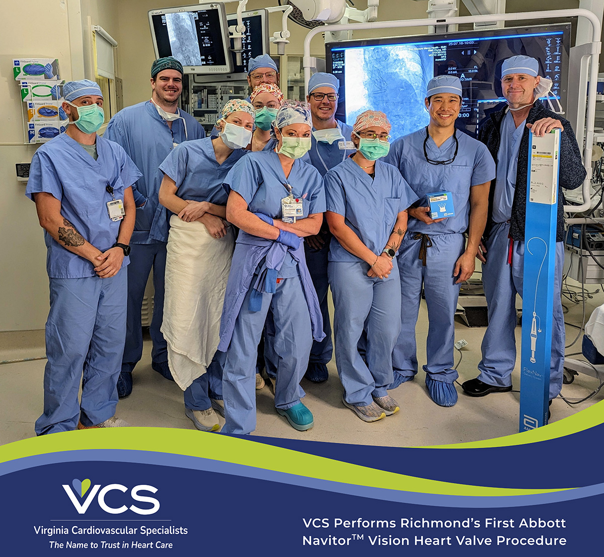 “It’s an amazing technology that has truly revolutionized how we care for patients with aortic stenosis,” Dr. Chung said. “VCS has a long-standing history of pioneering the field of structural heart disease in Richmond. As the first group to perform TAVR in the greater Richmond area in 2012, our cardiologists remain committed to providing the latest technologies to our patients. I am excited to bring the Abbott Navitor™ Vision transcatheter heart valve to Richmond and look forward to the benefits that it will provide for our patients.”